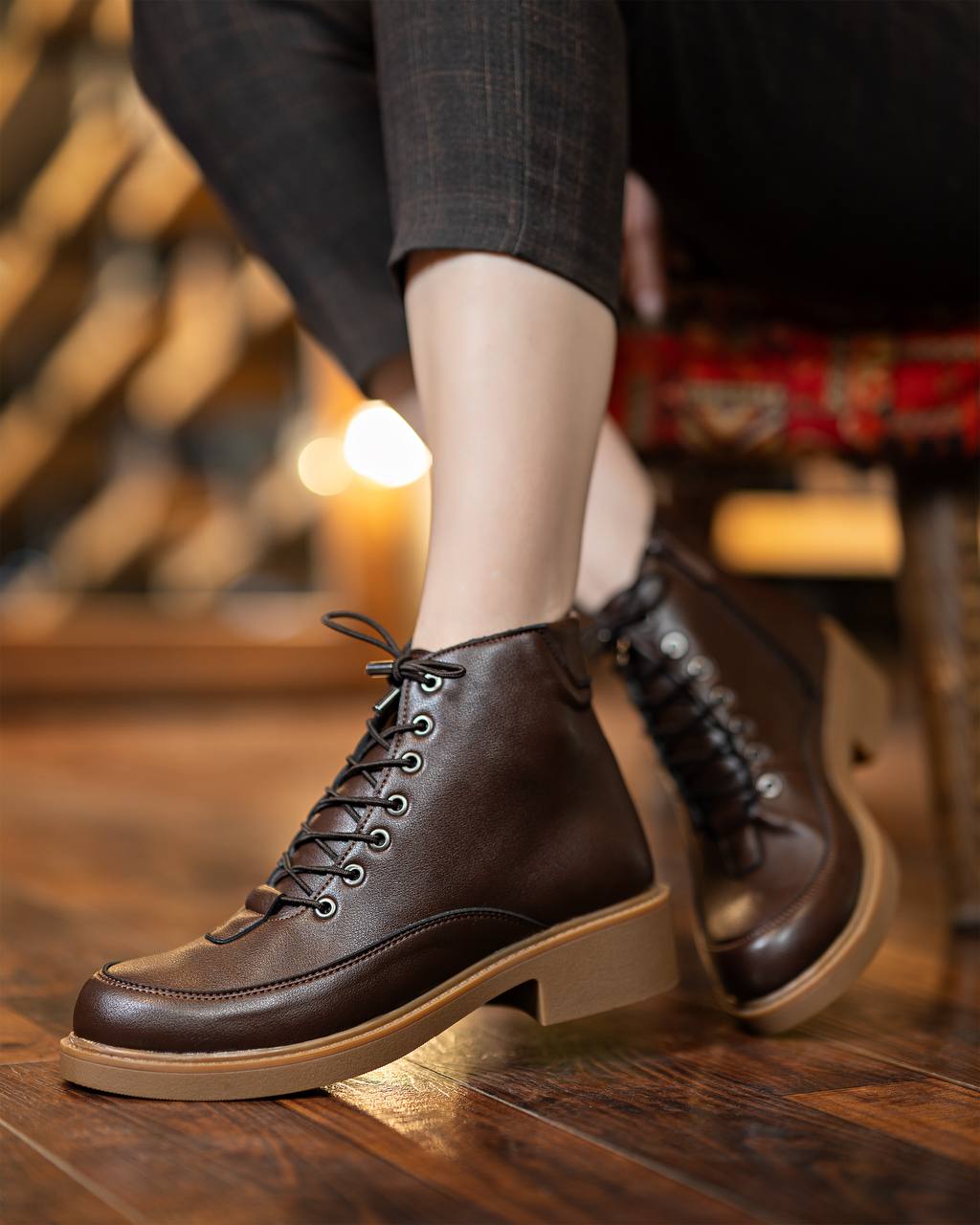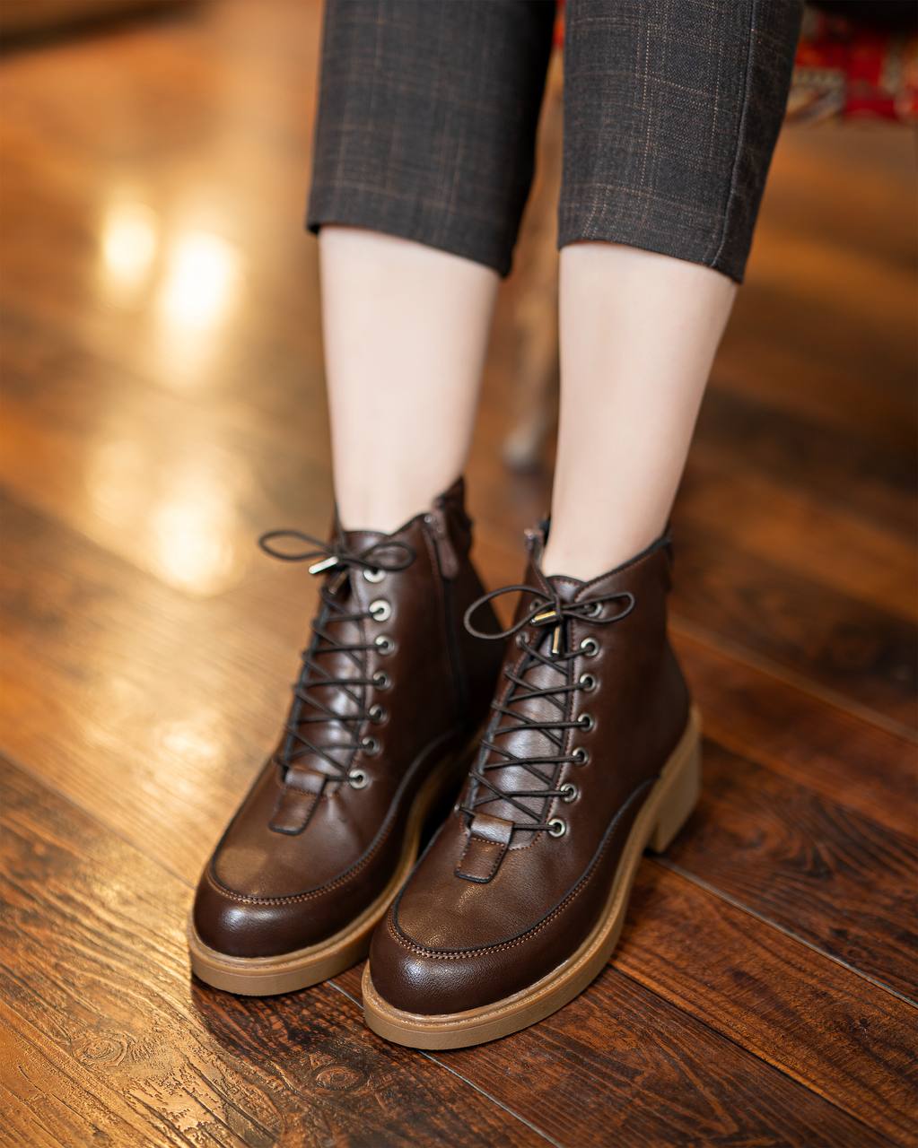فرم کلی بوت نیو ساده و کلاسیک است، اما چند جزئیات طراحی، آن را به مدلی مدرن و قابلتطبیق با سلیقههای مختلف تبدیل میکند. پنجهی نسبتاً مربعی و کشیده، ظاهر پا را جمعوجور و مرتب نشان میدهد و بندهای منظم روی رویه، حس نظم و دقت در استایل را تقویت میکند. این ویژگیها باعث میشوند بتوانید این بوت را هم در استایلهای مینیمال و تکرنگ و هم در ترکیب با لباسهای الگودار و پارچههای بافتدار استفاده کنید.